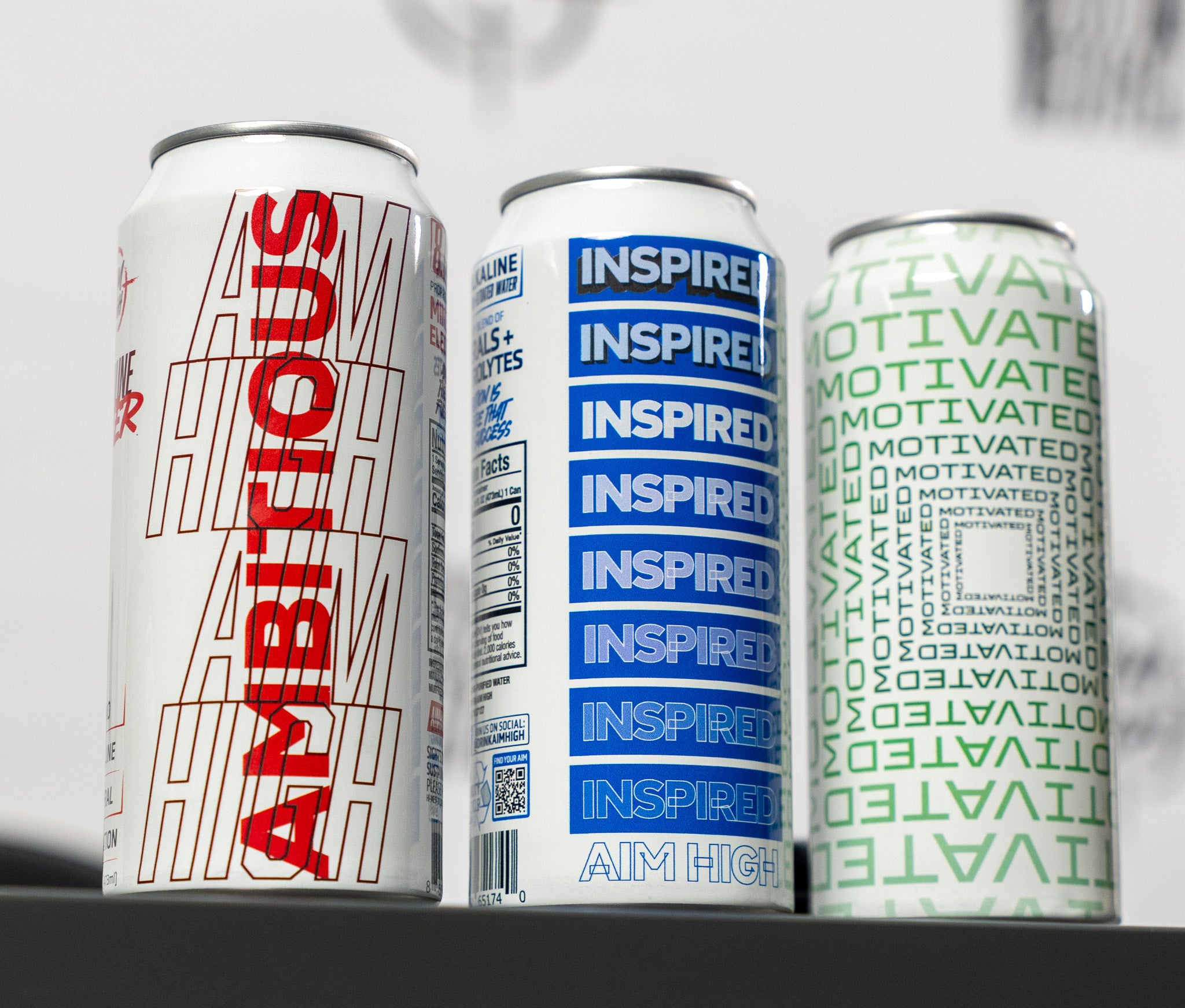 Every can of Aim High water shares our vision through artwork, motivational messages, and builds a foundation that brings positivity to help make ordinary moments feel extraordinary, every day.